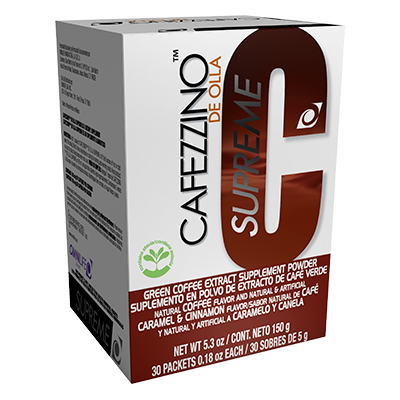 Enjoy a good cup of coffee? Need to loose or control your weight? Try Cafezzino de Olla Supreme, a unique coffee blend with the added benefits of Green Coffee Bean extract. Cafezzino de Olla Supreme now has 100mg of caffeine and 200mg of green coffee Bean Extract per serving! Sweeten with Stevia, Cafezzino de olla Supreme can be your healthy morning and afternoon cup of coffee.