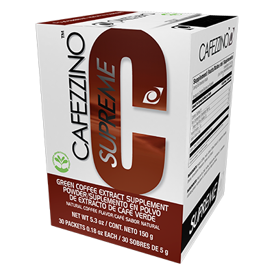 Enjoy a good cup of coffee? Need to lose or control your weight? Try Cafezzino Supreme, a unique coffee blend with the added benefits of Green coffee Bean extract. Cafezzino Supreme now has 100mg of caffeine and 200mg of green coffee Bean Extract per serving! Sweeten with Stevia, Cafezzino Supreme can be your healthy morning and afternoon cup of coffee.